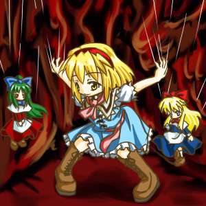 殴られては吹っ飛び、星になる・・・蹴られては吹っ飛び、星になる。・・・。 いじらしい・・・T□T;・・・しかし、うん。バイキンマンUFO動力って一体? アンパン動画1 新しい顔スローイング集 さぁ皆さんご一緒に!『こっちみんな』 なぜか爆笑です。 オープニングトークその2『東方の好きなキャラですか?』 一番は萃香かな。飲んだくれの鬼です。へ・・・可愛いじゃん!実際萌えキャラ ですぜ。次はてゐ&鈴仙のコンビ。ダブルいなばってことで。 なんでこんなことを?ってことですが、いや。一応メールで聞かれたので。 さて今回は紅魔館の主ってことで、ドールデッキの紹介です。むしろアリスですね アリスを知らない?・・・こんな人。 ←人形を使ってます 吸血鬼つながりで紅魔館の主でもOKでしょう!(こじつけ) 変幻獣の研究所 人形使いの館 最近ネタが多いですねとメールをいただきました・・・いや。前から・・・ 盛り込んでいたんですが・・・誰も気づいてなかったとかマニアックすぎたと いうことなんでしょうか? 崑崙にて人形作り『崑崙は処刑の道具』 3 鬼哭神機サラスヴァーテイン 2 つき纏う人形エイミー 2 なぐさめる人形クラリス 3 切りつける人形ノエル 3 華麗なる人形遣いコルヴィッツ 2 タングリング・パペット 3 はしゃぐ人形コレット 3 鬼哭神機ダイディーヴァ 3 鬼哭神機アスラオー 2 鬼哭神機ギルタブ 3 要塞崑崙 3 秘密作戦本部 3 破壊竜吼える 2 発進!? 3 黒き冥王の門 なんで崑崙なの!って聞かれても・・・強かったとしか。 以前の九州最強決定戦ですね・・・崑崙を使って殲滅されたことがあり、 それ以来肉屋の中でドールは崑崙と相場が決まっているんです。 え?背炎の陣?スタックでやられる可能性があるじゃまい!え? +1000でもさらに大きい火力や確定除去を打たれたら?気にスンナ! ということで、って祝50000ヒット!気付くの遅すぎだろ; 皆様ありがとうございます。これからも頑張っていきたいと思います。 今回はここまで。